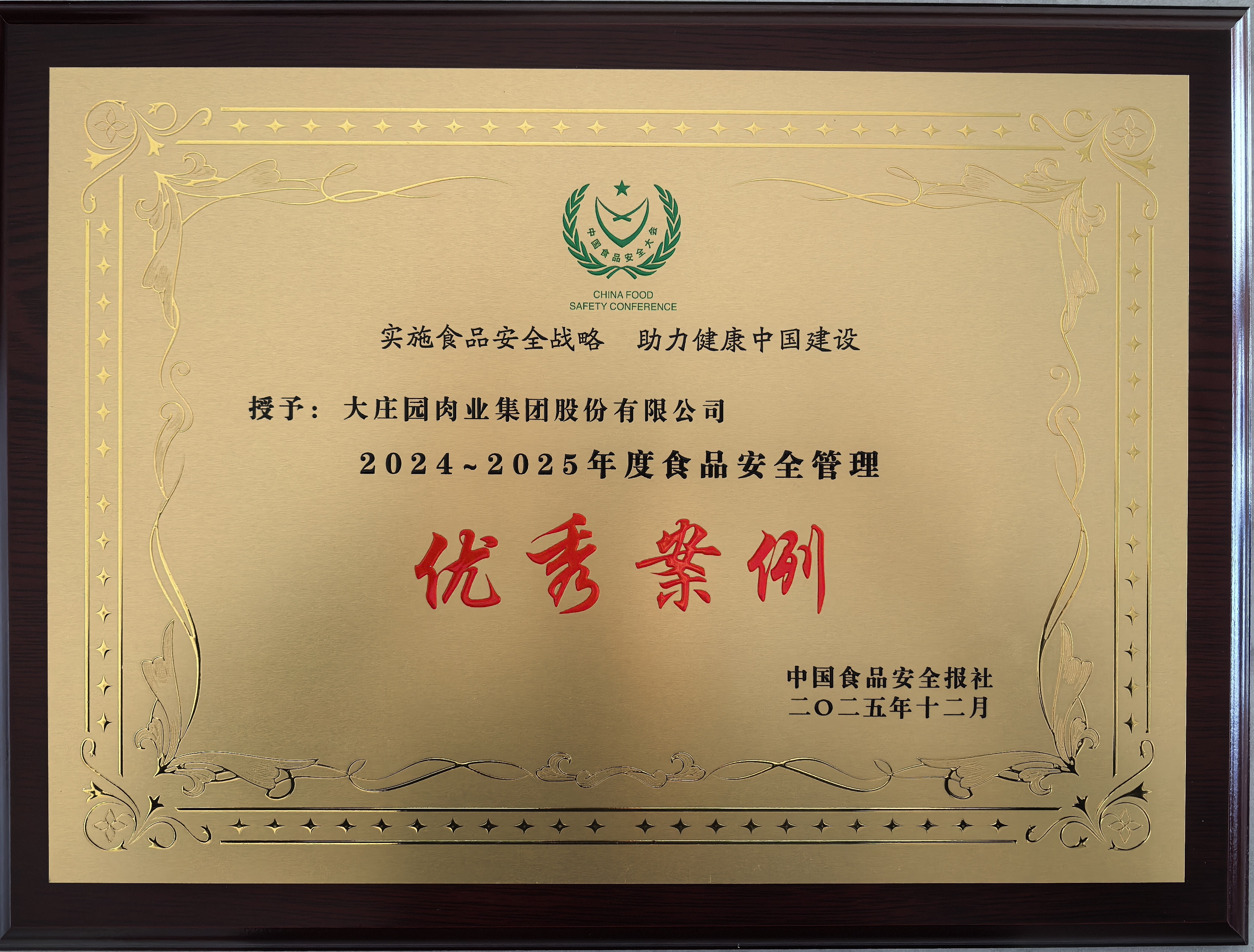 在本屆大會上,大莊園集團憑借規范、嚴謹的食品安全保障體系,榮獲“年度食品安全承諾單位”及“年度食品安全管理優秀案例”兩項重要榮譽。