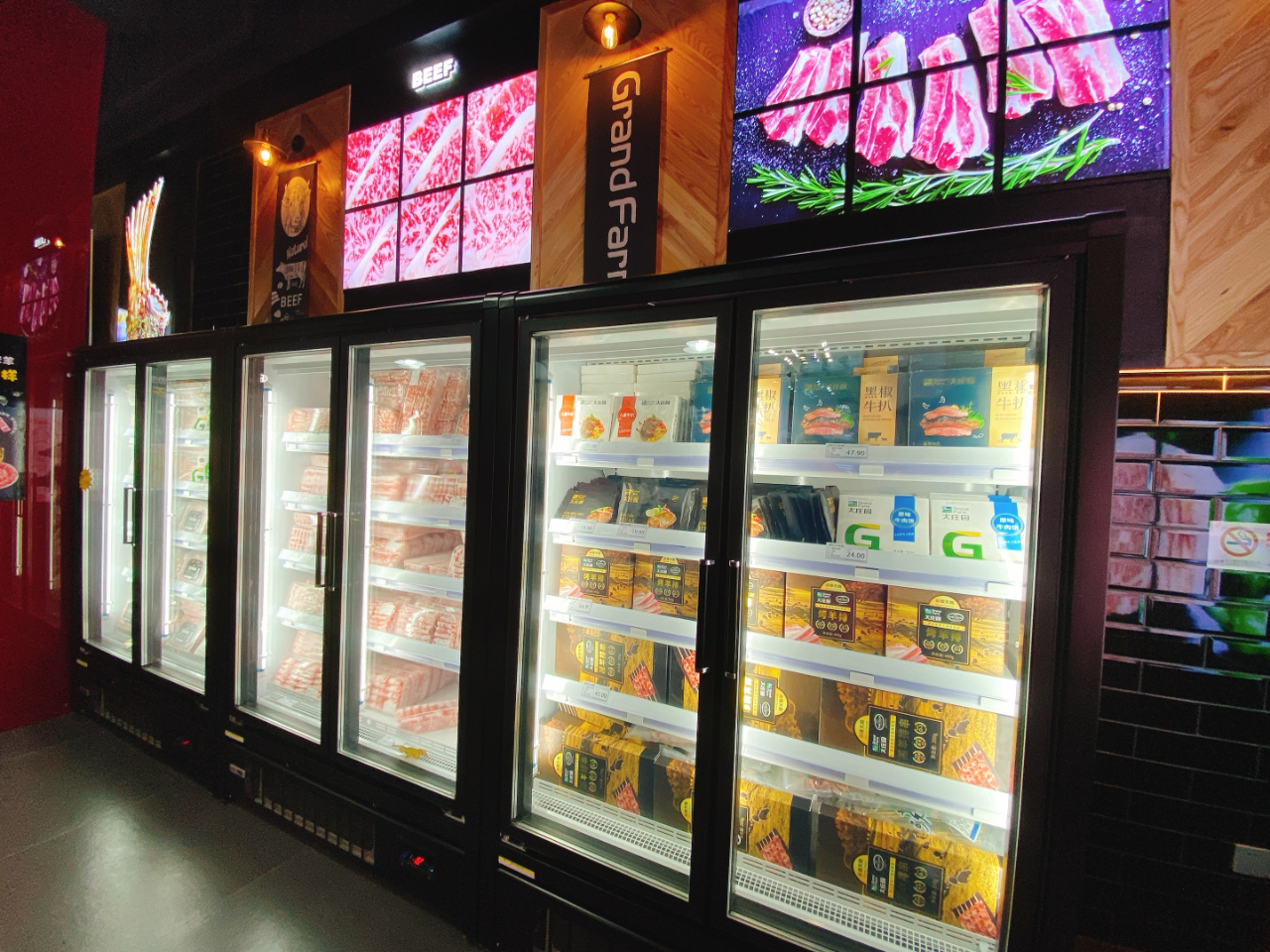 店內不僅有新鮮現(xiàn)切的牛羊肉產(chǎn)品售賣,更有高端和牛產(chǎn)品、速烹類產(chǎn)品和阿米莉亞莊園定制紅酒。